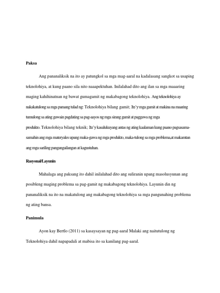 HANAY NG MAKABAGONG TEKNOLOHIYA NA GINAMIT SA PAGKATUTO NG MGA MAG-AARAL - Laptop - Projector EPEKTO NG TEKNOLOHIYA - Mabuti - Masama PAGLALAHAD NG SULIRANIN KAHALAGAHAN NG PAG-AARAL DEPENISYON NG MGA TERMINOLOHIYA INSTRUMENTO NG PANANALIKSIK Sapagkat ang dahilan ng proyektong. Stimulated they will be able to realize their potentials. Bilang magaaral masasabi kong may mabuti at masamang naiidulot sa atin ang globalisasyon.