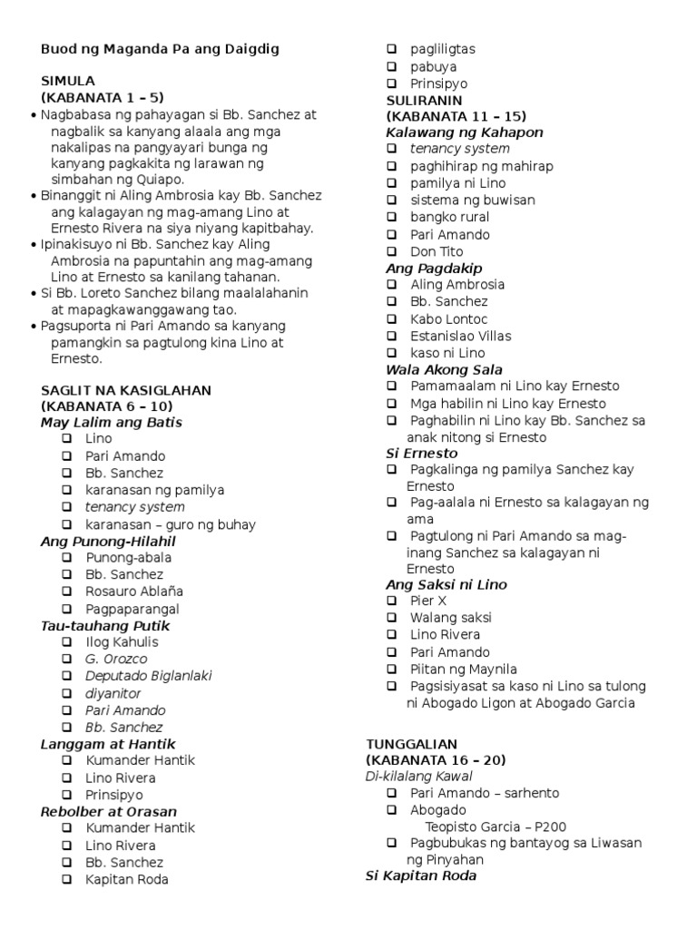 Ingatan mo at pakamahalin ang alaalang iyan ng iyong ina Itaaay tutol pa rin ni Ernesto. May dalawang uri ng balangkas ang paksang balangkas at pangungusap na balangkas ngunit dito ating bibigyan lamang ng halimbawa ang paksang balangkas. Si Lino ay anak ng magsasaka at dumanas ng pagdurusa sa sistemang piyudal.